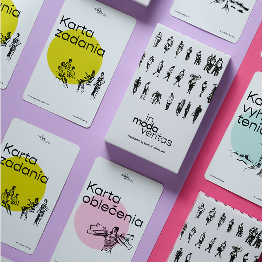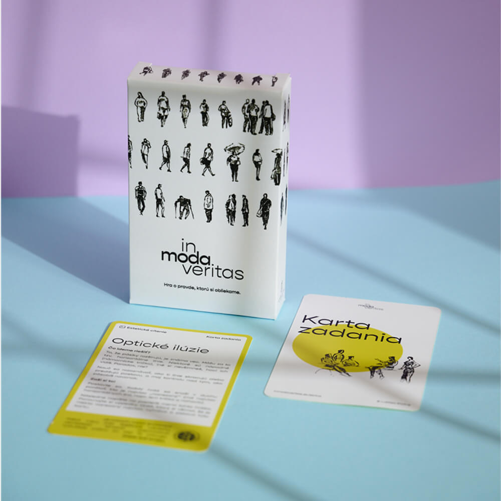 in moda veritas je reflexívno-komunikačná kartová hra, ktorá bola nadizajnovaná tak, aby vám dala viac ako len zábavu. Vďaka niekoľkoročnému vývoju a testovaniu má táto kartová hra premyslenú štruktúru a dokážete vďaka nej už po prvom odohraní meniť svoj šatník/život k lepšiemu.